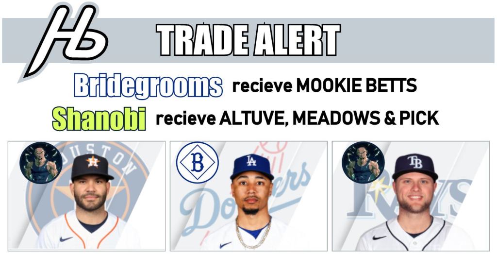 In a blockbuster move, Mookie Betts heads to the Brooklyn Bridegrooms to join several other LA Dodgers, while Jose Altuve and Austin Meadows join the Super Saiyan Shanobi. When asked about the move, the Bridegrooms GM talked about what it takes to get a generational bat like Betts, “I felt like my pitching has always been my strong suit, and there are only a couple bats in the league I’d feel comfortable investing three assets into in exchange for a long-term solution; Mookie is one of those bats. I’ve just Betts my bottom dollar on the future of the Bridegroomn nation.” Super Saiyan Shanobi got off to a great start in the 2020 season, and has put themselves in contention for a playoff spot down the road. Typically, playoff contenders don’t part with a player like Mookie Betts, but when you can get two All-Star bats in return that have a chance to make you better than before, and, you get a draft pick for future growth – how can you not make the deal? The Shanobi GM had this to say, “It’s great we get two high caliber everyday position players, one that still has great potential as a young budding star, and another in Altuve, wherewe can get a couple more All-Star seasons out of. With the second round pick we can focus on pitching in next years draft. Really excited about the foundation of hitters we now have and can build off for years to come.”