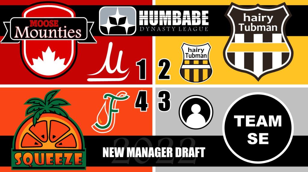 The Florida Squeeze certainly received the most favorable Draft Lottery result from a traditional sense, but the Moose Mounties could be the real winner when it’s all said an done. For the New General Managers, these Draft Lottery Results not only determine the 2022 FAR Draft Order but the reverse of those results are effectively the New Manager Draft Order as well. So the team selecting their first Keeper from a Player Pool headlined by Trea Turner, Mike Trout, Kyle Tucker and Ozzie Albies, will be the Canadian Moose Mounties. The Hairy Tubman will select second, Team SE third, then for the serpentine turnaround picks (4th and 5th) – the Florida Squeeze. Pick your poison, but when it’s all said and done, it’s not a matter of where you pick in the Draft Order – it’s what you do with those picks that matter.