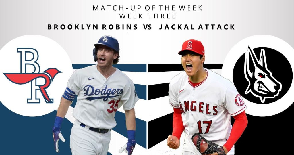 After taking down the Florida Squeeze and San Francisco Studs to open up the season, the Brooklyn Robins’ GM took to Twitter, saying “I’m starving, is it [Week 3] yet!? Jackal on the menu!” From there, the public debate between Jackal Attack and the Robins mainly focused on which one of their mascots would win the wilderness, perhaps means to keep their fantasy baseball strategies confidential? By Wednesday, the Brooklyn Robin strategy had presented itself – find as many possible Starting Pitchers through the Free Agent market as possible. The Robins used all five of their transactions during the Match-Up, totaling an added gross value of 22.58 points. While a proven effective strategy in years past, unfortunately, it very much backfired for the Robins this time around. In order to make those five transactions, five players were dropped, and after they were dropped they accumulated 63.75 points (41.17 points more than the players acquired). Nonetheless, even that swing wouldn’t have been enough to overcome Jackal’s 224.5 Hitting Points and 269.08 Pitching Points. Led by a 45 point effort from George Springer and a two-start 37.92 performance from Dane Dunning, Jackal was able to end the week on Twitter with this riddle, “What’s red, brown and blue all over? [A] little cockatoo bird that tries to tango with a Jackal. Welcome to the Jackal den [Brooklyn Robins.]”