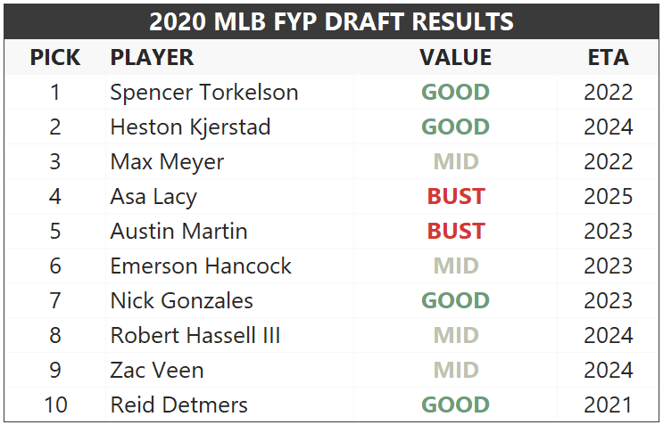 What about the Top 10 MLB Draft Selections? Can we at least have trust in seeing those guys turn into legit Fantasy Baseball contributors?