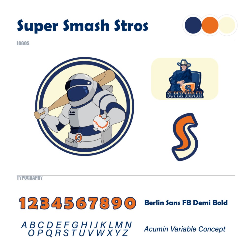This release has been years in the making, literally. Your Commissioner, who doubles as the founder of Effective Logos, has always had a knack for drawing conceptual Expansion Team logos – just in case Major League Baseball were to come asking for one someday. In 2012, Commish brought the “Houston Payloads” to life with pencil and paper. Represented by an astronaut who must have better Hit and Power Tools than Barry Bonds, if you’re basing that just off the bat he was drawn holding. That astronaut had lived in just a dusty drawing tablet since then, until now, eleven years later. The Super Smash ‘Stros now own the Astronaut slugger identity, playing of the space theme of the Astros with a Super Smash Bro inspired background. The hat emblem, a new addition to the original 2012 concept, takes a Milkway-Galaxy-like wave through the “S” – creating three separate “S’s” unique to these ‘Stros.